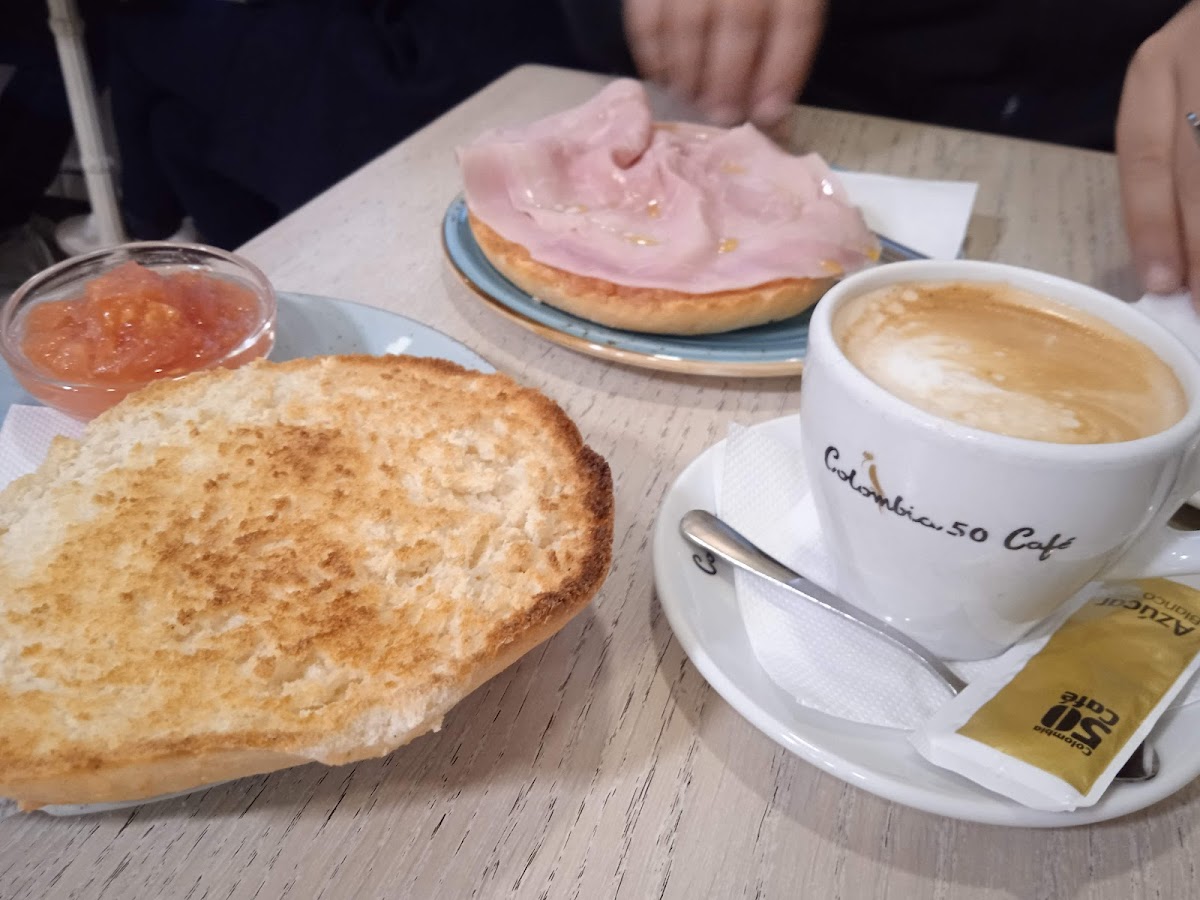 Locals favor Colombia 50 for its well-crafted café con leche and the variety of toasts and pastries designed to pair perfectly with their coffee. The menu leans on classics like croissants, tostadas with toppings such as jamón york or salmon, and simple yet satisfying sweets like Oreo and yogurt tarts. The breakfast rush can get busy, but service remains attentive and efficient, which is appreciated when time is limited but quality still matters.